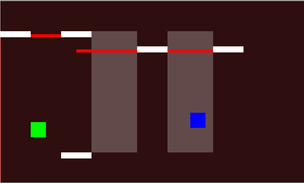 The goal of this platformer is to get to the screen that tells you that you won. You do this by reaching the green square in each level, while avoiding going too far off the edge of the screen or hitting the bottom of the screen.